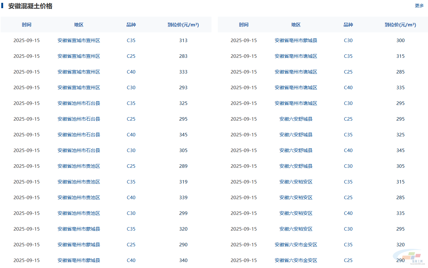 混凝土价格:马鞍山、滁州、阜阳、合肥...安徽省热门城市 C30混凝土行情一览