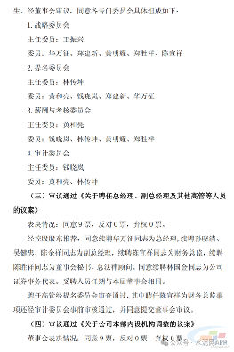 经控股股东推荐,同意续聘华万征同志为总经理,续聘孙晓清、吴健忠、陈金祥同志为副总经理,续聘陈宣祥同志为财务总监,续聘陈胜祥同志为董事会秘书、总法律顾问。同意续聘林国金同志为公司证券事务代表。受聘人员任期与本届董事会相同。
