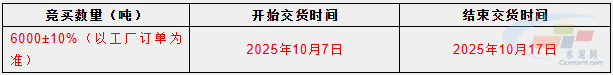 注:视实际情况,具体开始交货时间以工厂订单为准。如果卖方不能按期交货,甲方有权采取其他的方式保供,保供造成的损失由乙方承担,且买方有权扣除卖方全额竞拍保证金。