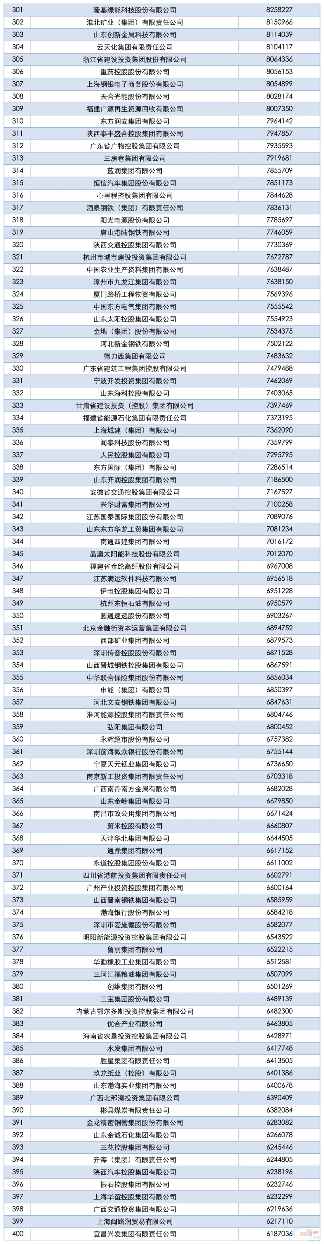 此外,业务中包含水泥的中国华润有限公司、淮北矿业(集团)有限责任等公司同样入选榜单,完整榜单如下: