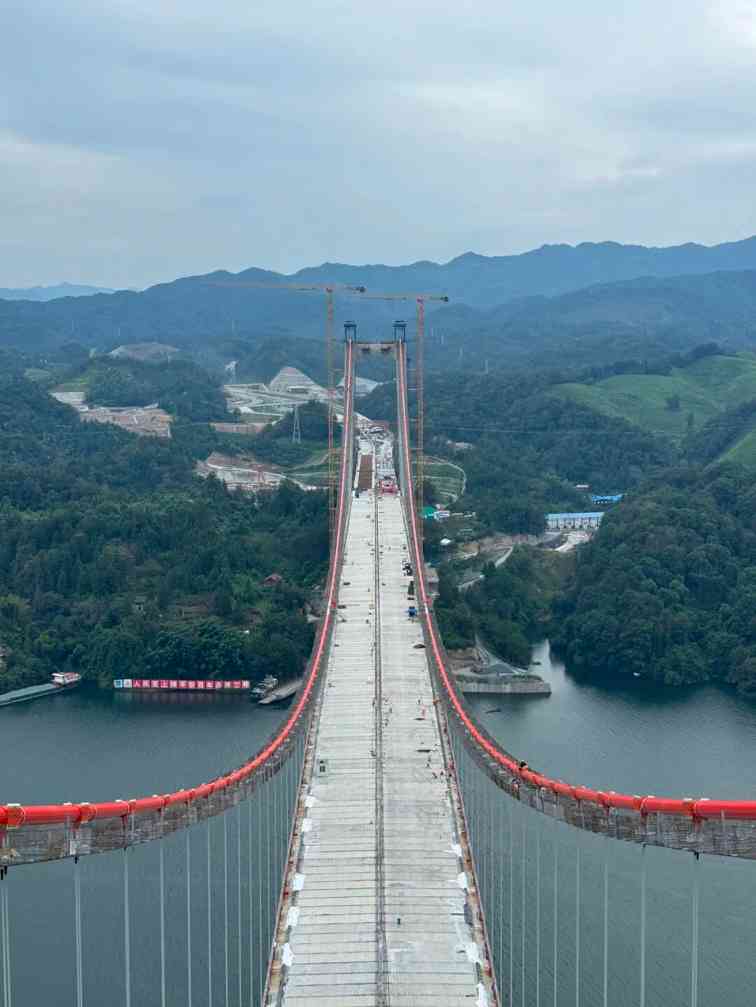 洞庭溪沅水特大桥是张家界至沅陵官庄段高速公路关键控制性工程,全长1707米,主桥设计为跨径800米双塔单跨悬索桥,建成后将与全长32.6公里的高速路网衔接,构建张家界至怀化的南北快速通道,有效推动区域资源流动与经济融合。
