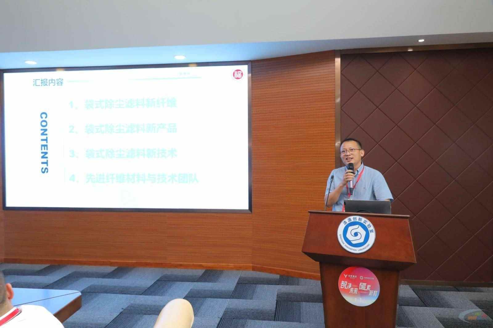 远致集团董事长罗祥波在《金属滤袋的特性及其应用》报告中,详细介绍了集团在金属滤袋技术方面的创新突破与实际应用案例。福州大学蔡伟龙研究员分享了《袋式除尘滤料新纤维、新产品与新技术进展》,远致集团高级工程师庄露凯则系统介绍了《远致集团产品体系与技术创新报告》,全面展示了集团在环保材料领域的技术布局与创新成果。