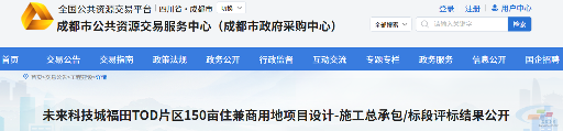 项目名称:未来科技城福田TOD片区150亩住兼商用地项目设计-施工总承包/标段评标结果公开