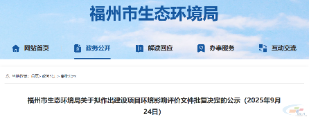 9月24日,福建省福州市生态环境局发布关于对宏庆沥青搅拌站项目环评拟作出批复决定的公示。公示期为2025年9月24日-2025年9月30日(5个工作日)。