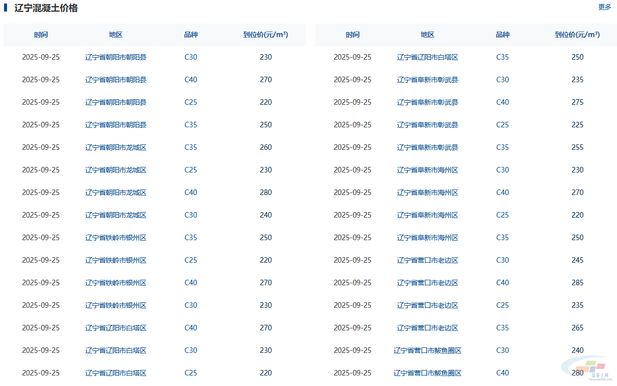 辽宁省内C30混凝土的市场价格区间在230-280元/方左右,显示出一定的地区差异。