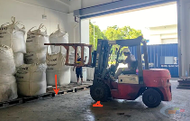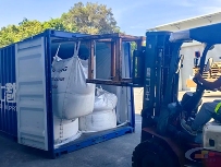 水泥在从仓库转运到集装箱时,使用了特种设备叉车。