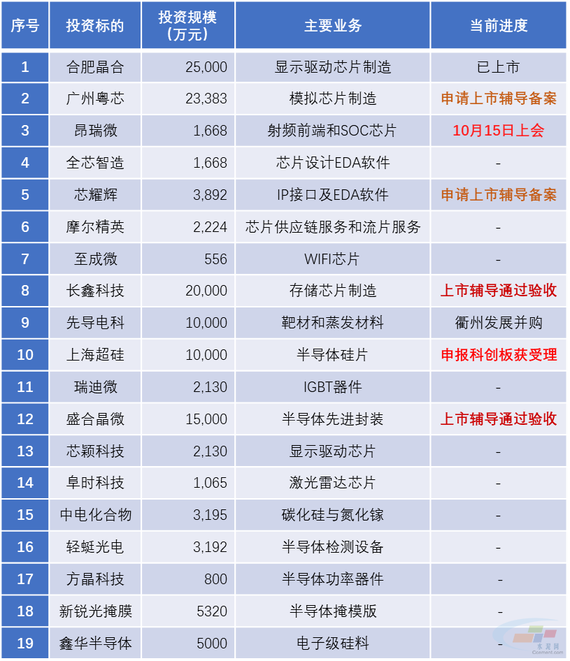 近5年来上峰投资的半导体企业如下: