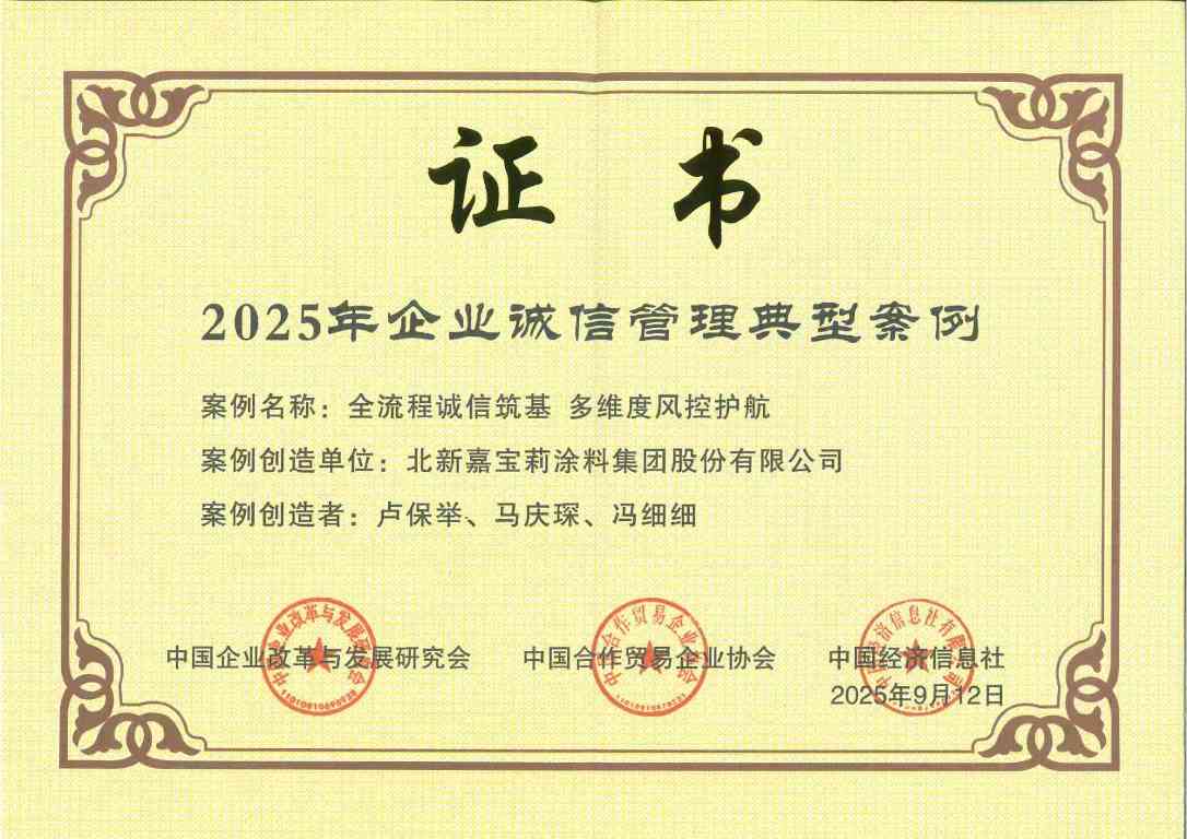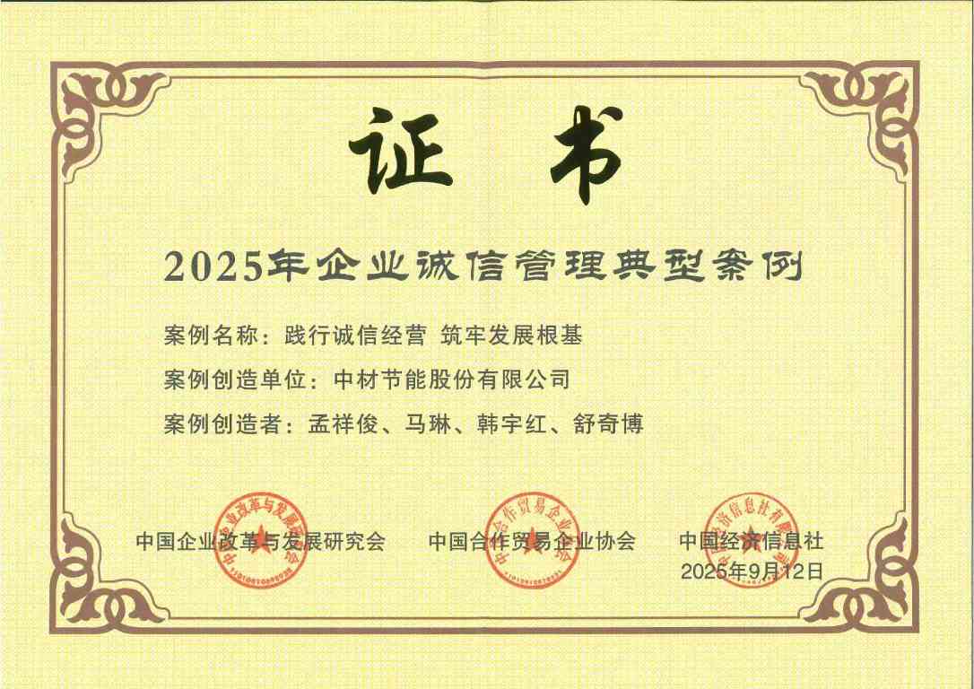 9月27日,中国企业改革与发展研究会、中国合作贸易企业协会主办的“2025年企业诚信建设高质量发展大会”在福州举行。中国建材集团入选“2025年培育诚信经营守信践诺标杆企业倡议单位”,集团所属中材节能股份有限公司、北新嘉宝莉涂料集团股份有限公司、山东瑞泰盖泽工程有限公司的案例荣获“2025年企业诚信管理典型案例”。