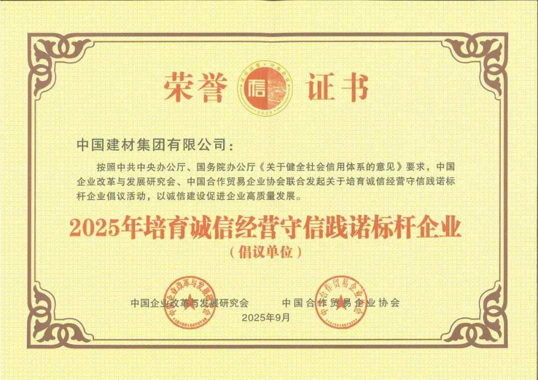 中国建材集团:中国建材集团入选2025年培育诚信经营守信践诺标杆企业倡议单位
