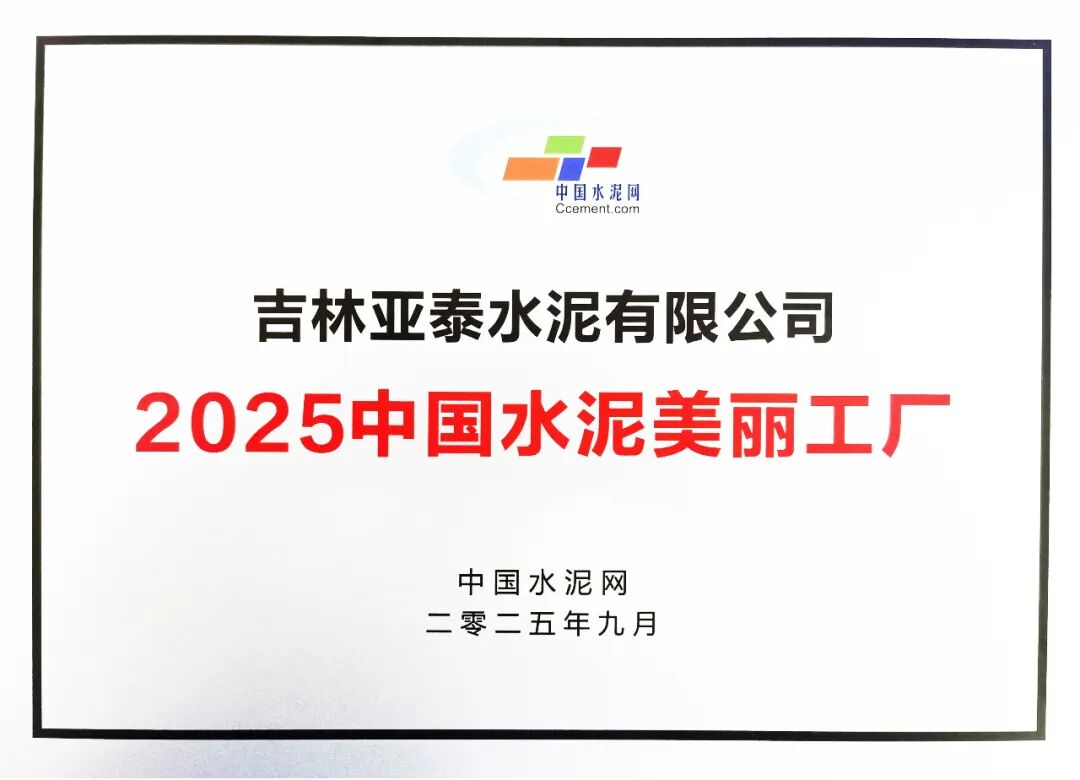 吉林亚泰水泥有限公司荣获“2025中国水泥美丽工厂”奖项