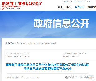 福建工信厅3月发布“关于宁化金牛水泥有限公司4500t/d水泥熟料生产线项目节能报告的审查意见”称,原则同意所报项目节能报告通过审查。