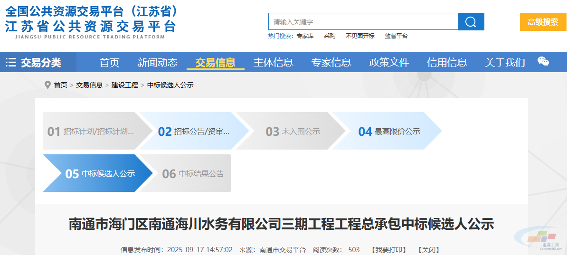 项目名称:南通市海门区南通海川水务有限公司三期工程工程总承包