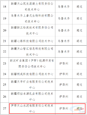天山两家水泥企业拟入选自治区级企业技术中心
