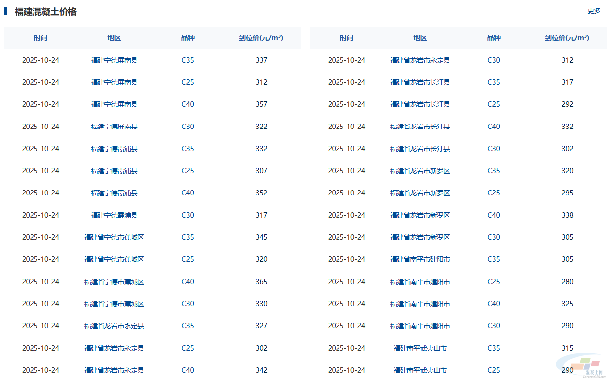 混凝土价格:厦门、莆田、泉州...福建省热门城市 C30混凝土行情一览