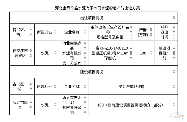 河北金隅鼎鑫水泥粉磨产能出让方案撤销
