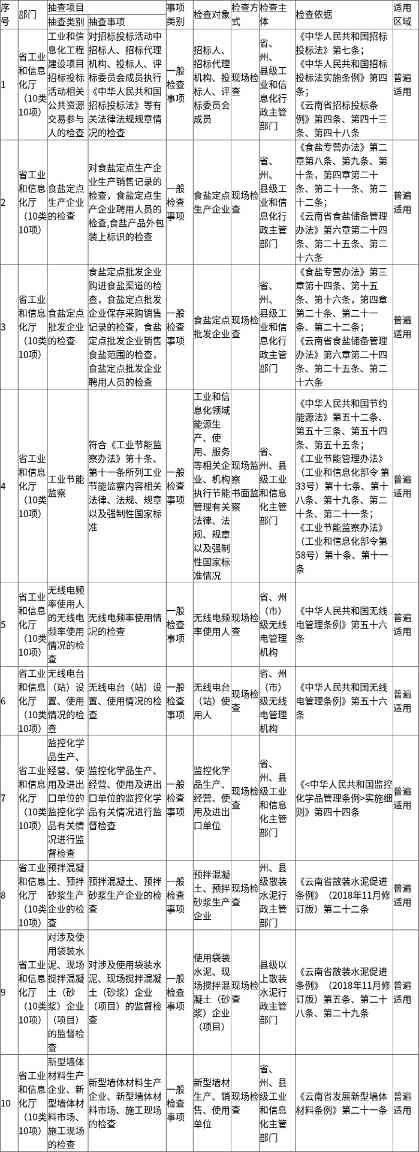 云南省市场监管领域统一随机抽查事项清单(第六版,省工业和信息化厅部分…