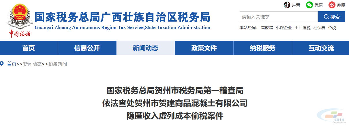 广西一混凝土公司3年偷逃税284万元,税务稽查追缴+罚款合计超530万