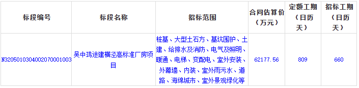 项目名称:吴中鸿途建横泾高标准厂房项目中标结果公告
