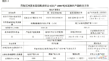 青海宏扬水泥有限责任公司4000t/d熟料线补充250t/d产能,产能指标来自青海江河源水泥有限责任公司1000t/d熟料线的500t/d产能,置换比例2:1。