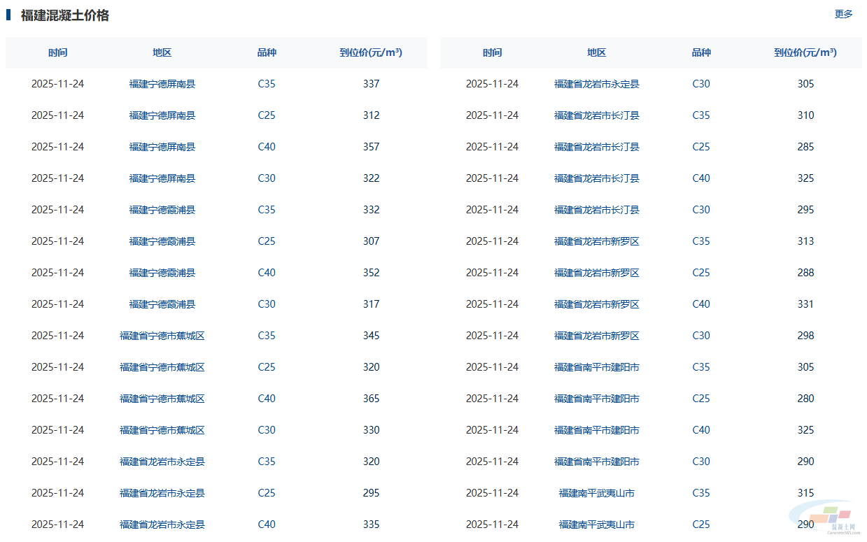 福建省内C30混凝土的市场价格区间在265-315元/方之间,显示出一定的地区差异。