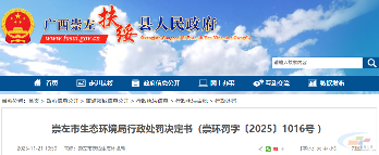 近日,广西崇左扶绥县生态环境局发布一则行政处罚决定书(崇环罚字〔2025〕1016号 ),当事人为广西扶绥县鑫新混凝土有限公司。