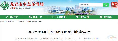 9月18日,福建省龙岩市生态环境局拟作出替代原燃料资源综合利用项目环评审批意见公示,公示期为2028年9月19日-2025年9月25日(5个工作日)。