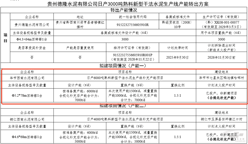 建材百科 毕节西南6000t/d熟料线补充1000t/d产能 金峰建材 2026-04-04 2026-04-04 10月22日,贵州省工信厅发布公示,毕节西南水泥有限公司6000t/d熟料生产线补充1000t/d产能,置换比例1.5:1,补充产能指标来自于贵州德隆水泥有限公司3000t/d熟料线。 分享本文: 本文链接:https://www.jfxiyou.com/jiancaibaike/2888.html
